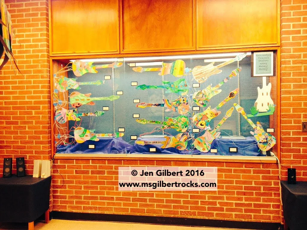 As a companion to sharing this with ICE via the newsletter, here you can find more information on the Picasso's Guitar Remix with Makey Makey project we did in the spring of 2016. Looking for the Global Programming Challenge wall post? Look just below this post on www.msgilbertrocks.com