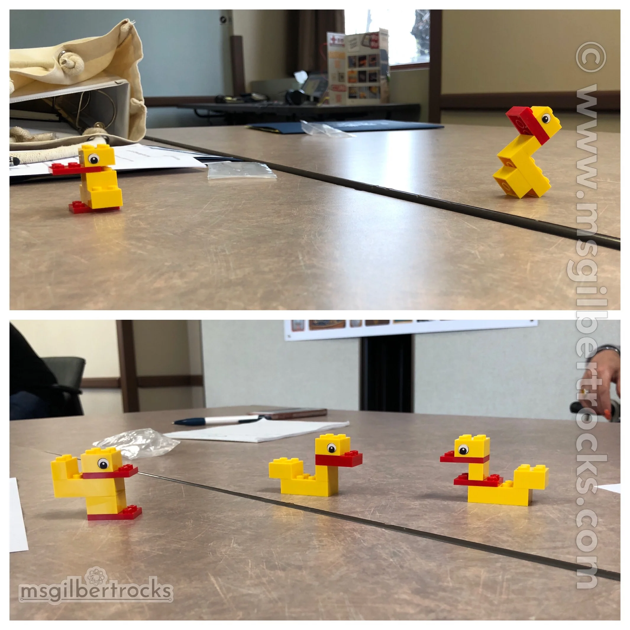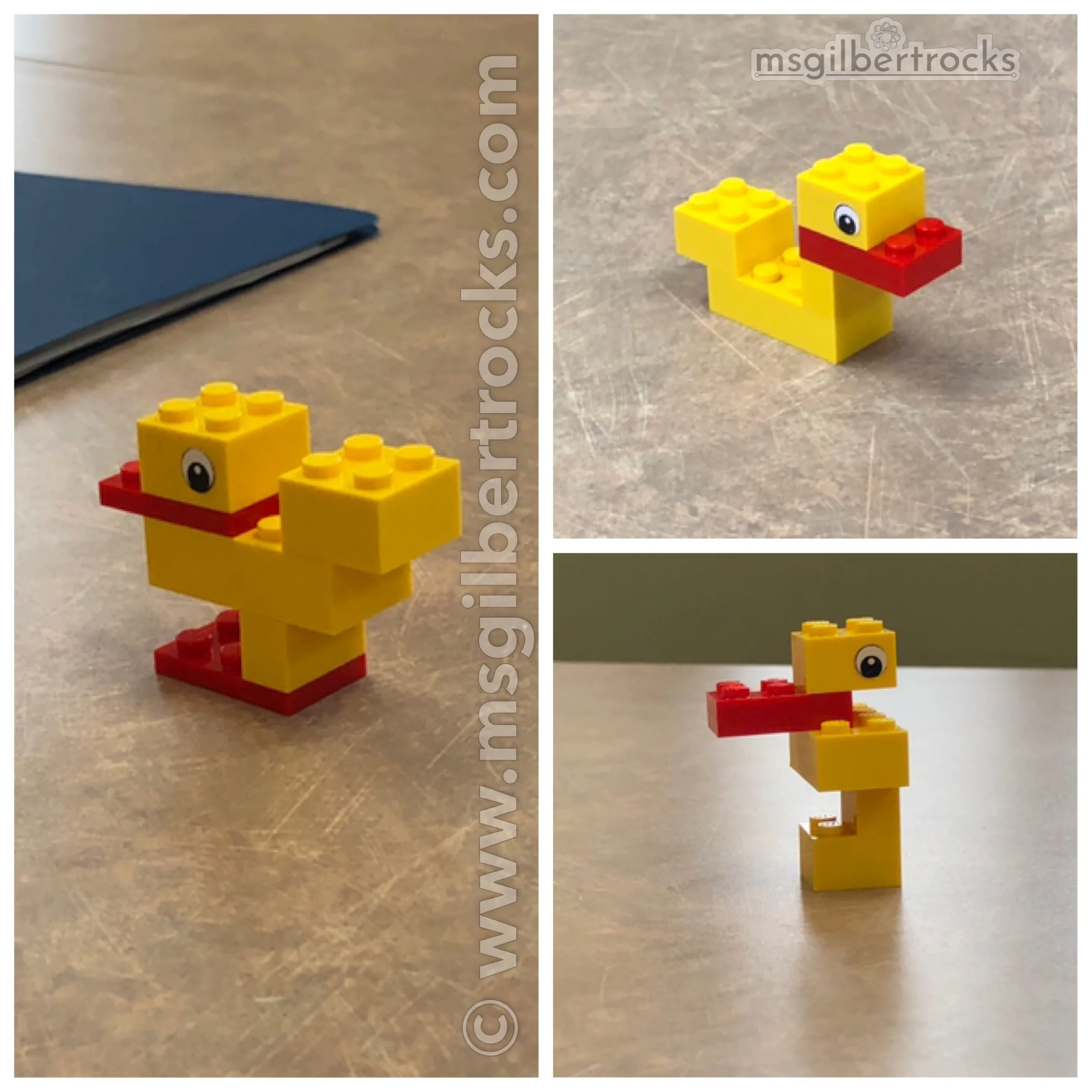 The “Build A Duck” activity came directly from LEGO® Education. The first time I completed it was at our the inaugural educator meet-up for our US LEGO® Master Educators Program that took place before #ISTE18 in Chicago (Read More Here). The person who facilitated the activity for us was Mitch Resnick. Yep. You read that right: MITCH RESNICK! How cool is that? In the version I did with adults during my session the only directions I gave were to use the six bricks provided to build a duck. I let them know we would share the designs at the end and talk over the experience of building a duck. As you can imagine there is often some questioning about “how” to build a duck. What are the directions for building a duck? There are none! The duck can be anything you want it to be and eventually people start to understand that everyone is going through the same process of figuring it all out. This group was amazing and several people immediately looked around to check in on what others were doing. I did point out that folks were doing that and praised them for it. It tends to relieve some tension. I will say that with students I run it a bit differently - I actually put privacy shields up the first time we did this at the beginning of the year. The goal is to help the kids understand that it is actually beneficial to take in what other ideas people have that may help you with your own design. Don’t worry, we get there eventually! Back to the amazing group at this conference. The attendees at this session also helped pass out and clean up the materials for each activity. I mean, come on! They were awesome!!