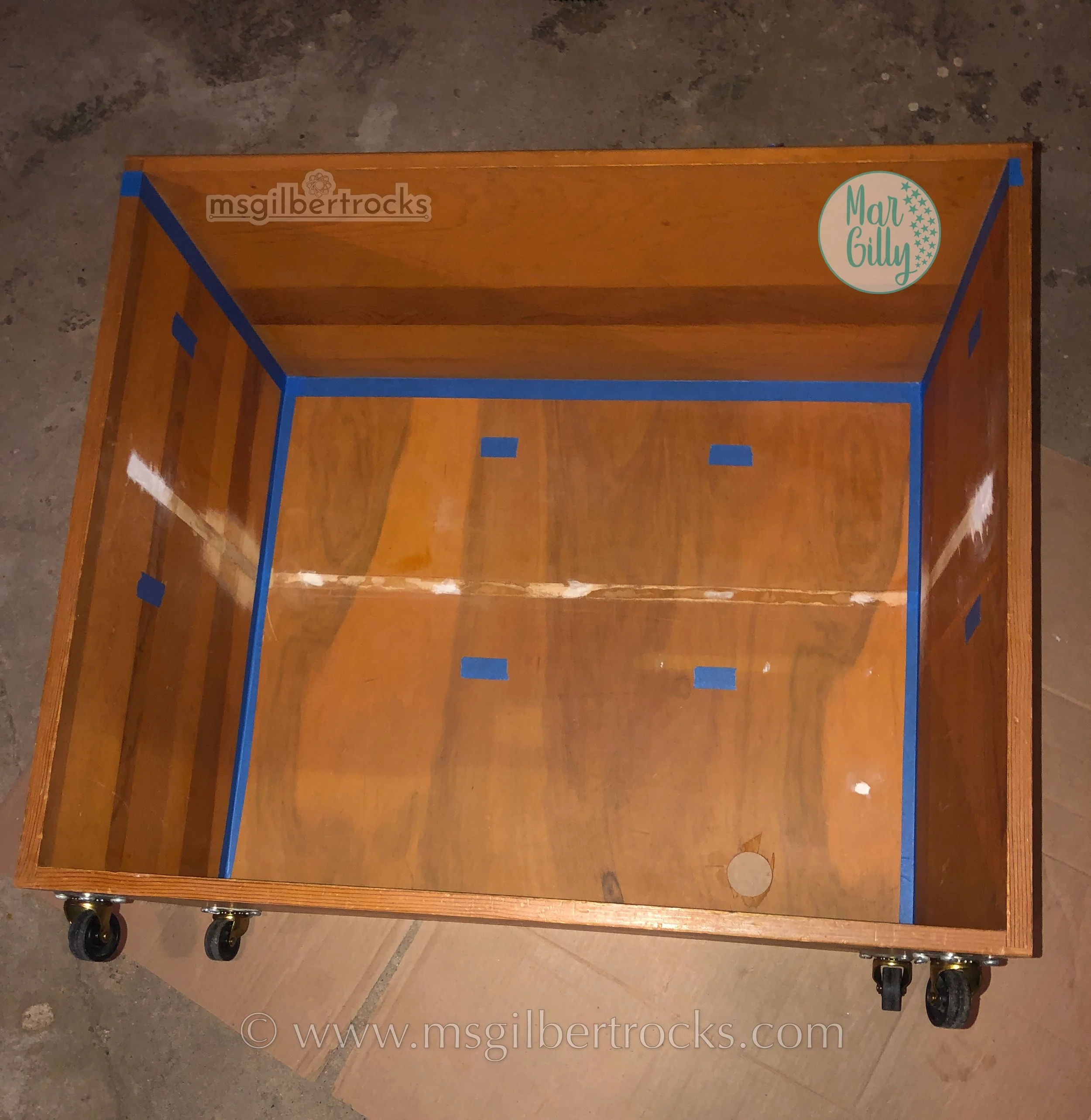 Maggie suggested checking out the Evanston Rebuilding Warehouse to find something more suitable. We figured we could find something reasonably priced and add wheels to make it work for this project. Little did we know that a trip to their store would yield a perfect match on almost every level for this project. Imagine our surprise when Jen walked down a row and saw a little cabinet with a real wood (albeit relatively thin plywood) back…and upon kneeling down to measure it discovered it already had little wheels on it! Jen’s jaw literally dropped when this happened! The size was not too far off for width and height, but the depth was around 15 inches. We thought it would still work out and held our breath when rolling it up to check the price (there was no tag). Another stroke of good fortune for us - while there is no teacher discount, this piece was only $10! Yeah, we still can’t believe our luck with this unique little piece. Solid wood, including the back, and only a single shelf to remove to create a fully open cabinet. Jen hoped the shelf could be also be repurposed into the front lip at the bottom to contain the LEGO pieces on the bottom of the cabinet. We did finish walking around the store, but no other piece came close to this little cabinet in form or price, so we happily purchased it ($11.04 with tax) and loaded it easily into the car (it is fairly lightweight!).